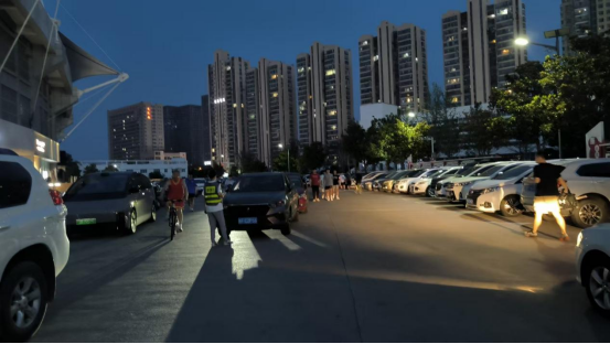 城泊公司針對體育中心周邊車流、人流集中的特點,提前制定保障方案,增派經(jīng)驗豐富的員工負責(zé)現(xiàn)場值守。活動從傍晚7點開始,身著制服的城泊員工在停車場入口、內(nèi)部道路交叉口、車位密集區(qū)等關(guān)鍵點位開展引導(dǎo)工作,成為夜市里一道忙碌而溫暖的風(fēng)景線。