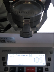 第二步設(shè)定下溫度。就設(shè)定105℃,溫度太高會把雞精烤化。溫度太低會影響雞精的測量時間。