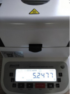 第二次測量,測試時間9分57秒,溫度105℃,水分0.814%
