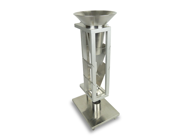 斯柯特容計(jì)法松裝密度測試儀是依據(jù)國家GB5060-85《金屬粉末松裝密度的測法第二部分:斯柯特容量計(jì)法》設(shè)計(jì)、制造;同時(shí)符合采用國際標(biāo)準(zhǔn)ISO 3932/2《金屬粉末松裝密度的測定第2部分:斯柯特容量計(jì)法》。該測試裝置適用于不能自由流過漏斗法中孔徑為5mm的漏斗和用振動漏斗法易改變特性粉末。